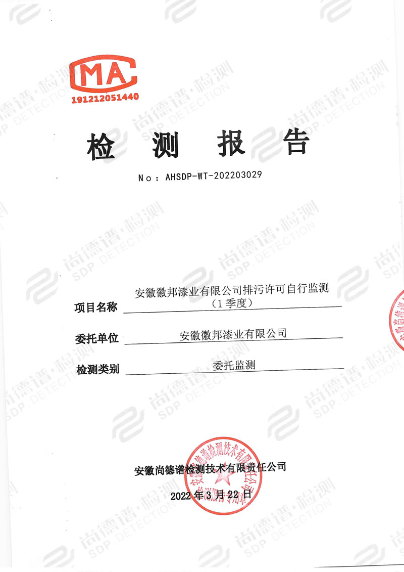 安徽色虎免费下载漆业有限公司排污许可自行监测(1季度)
